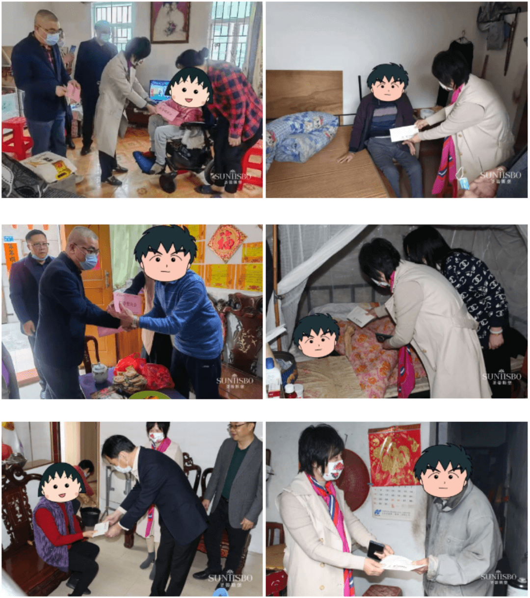 寒冬腊月,春节将至。2022年1月17、18日,6686集团副董事长梁碧霞女士亲自带领集团员工分别前往常平土塘社区、虎门镇赤岗社区、虎门镇南面社区,探望慰问孤寡老人、残疾人和社区寿星,并为他们送去了春节礼品和慰问金,为他们送去一年一度的新春关怀和温暖。在疫情的严防中,让他们体会到社会和企业的悉心关怀,感受到别样温暖的春节氛围。